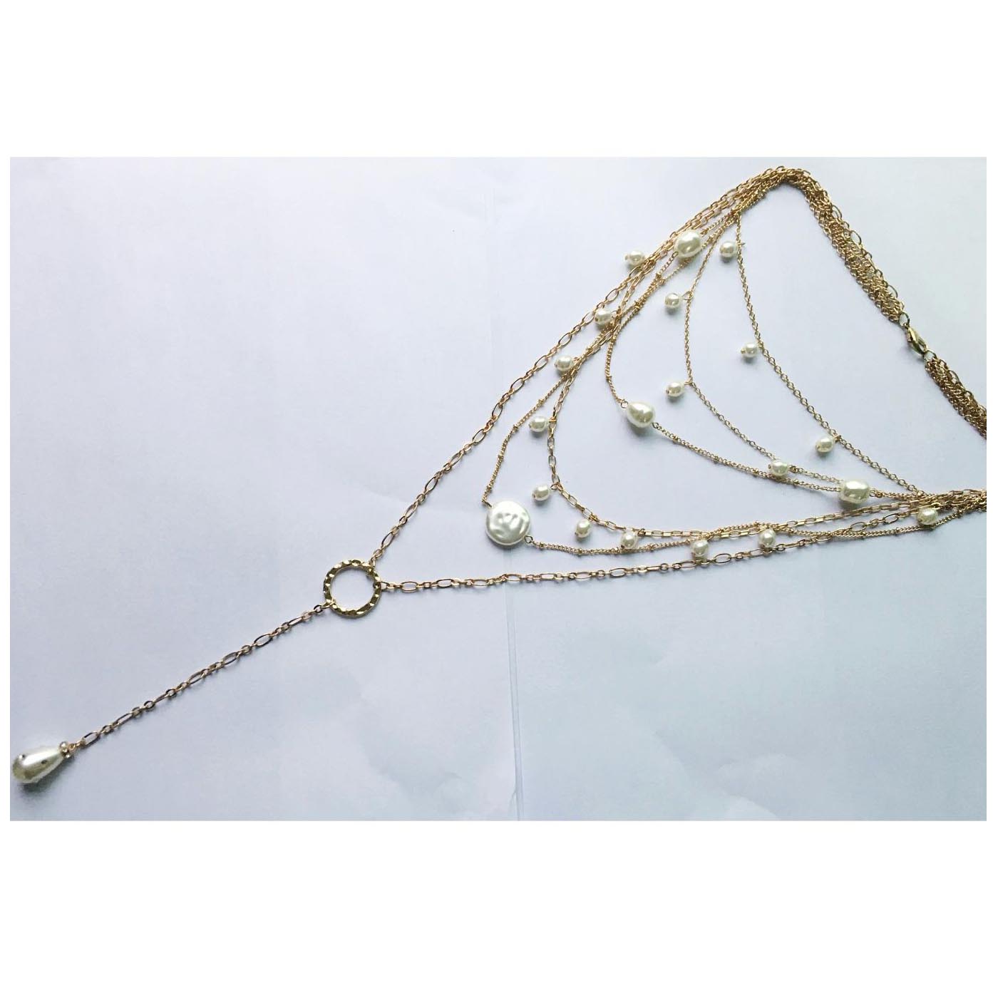 • As shown is an elegant trendy necklace with multiple strands each highlighted by plastic beads accessories.