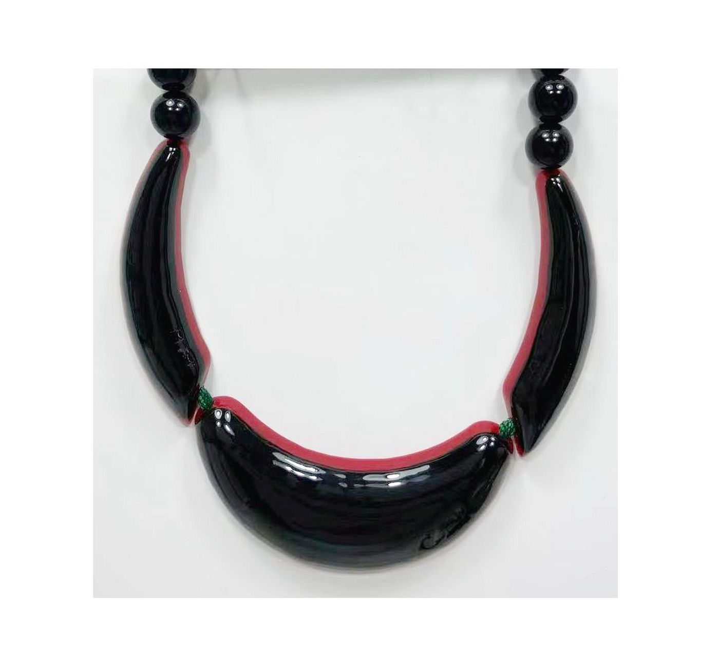 • As shown is a high-fashion plastic beads and pendant materials necklace.