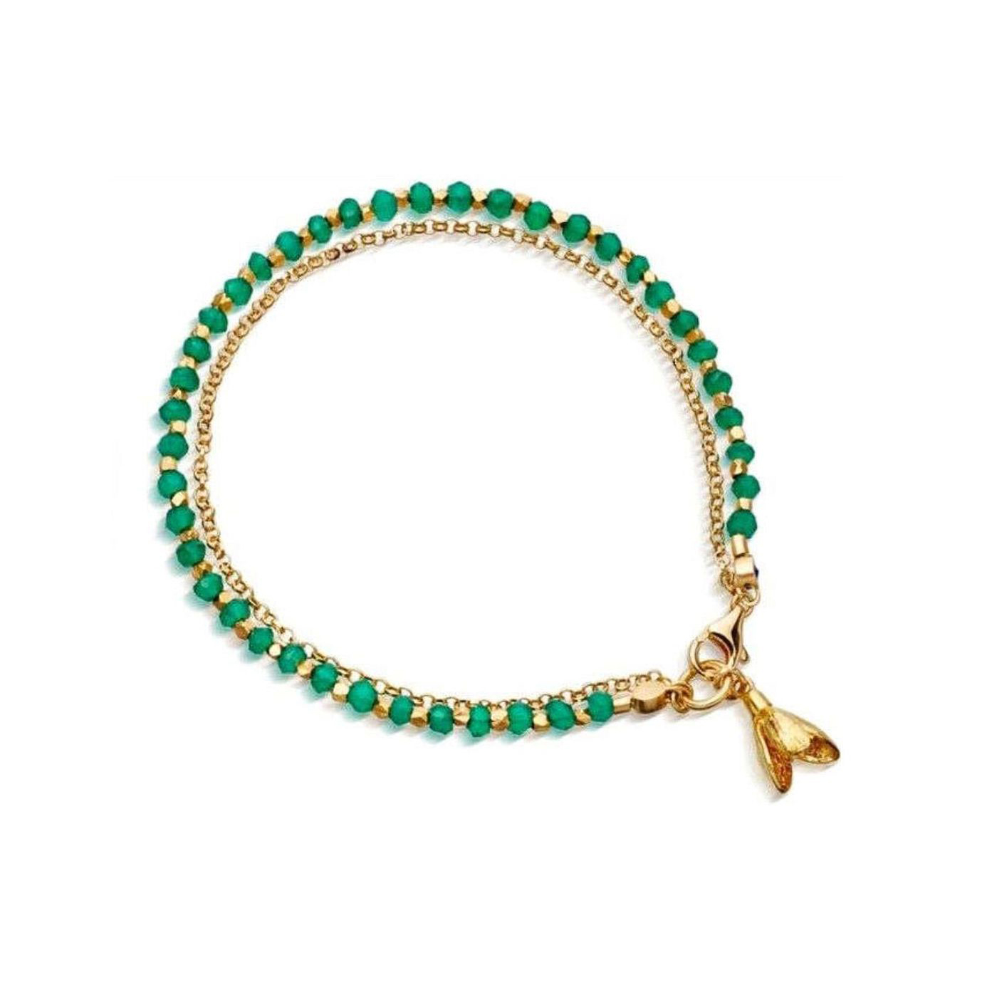 As shown is an elegant trendy plastic beads gold plated chain bracelet.