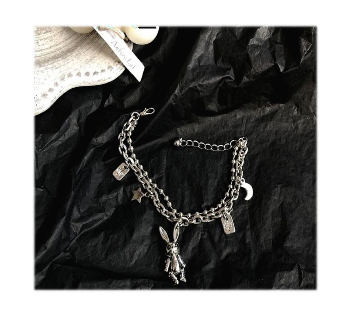As shown is a high-fashion silver plated bracelet with charm alloy materials.