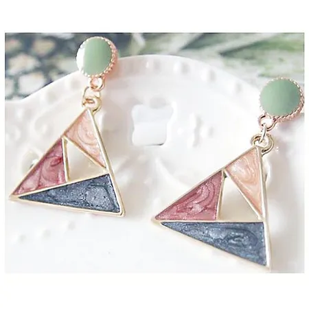 • As shown is a high-fashion golden plated triangle style alloy parts charm drop earring.