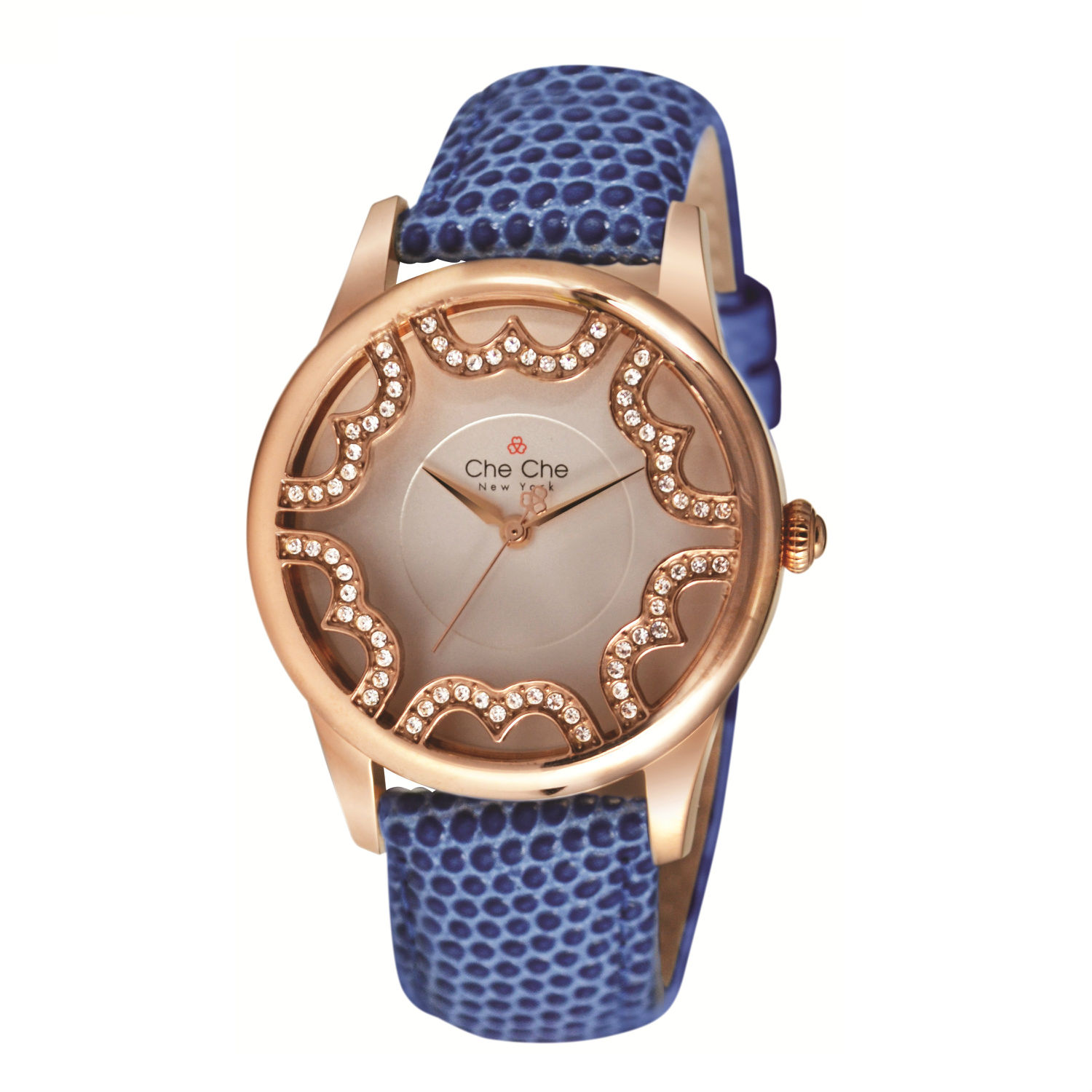 An outfit will never be the same with this Che Che New York Glorious Longing Series Watch. This leather watch embodies an elegant flair with its perfect blend of a nicely brushed IPRG-plated round case and a bold leather strap. With Swarovski crystals set on the openwork case, this chic timepiece shines exceptional brilliance.