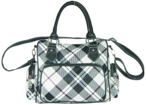 Coming in a classic boxy design with checked patterns throughout, this timeless bag will coordinate well with both everyday and formal wearing. Multiple wearing styles are possible with two top handles and an adjustable shoulder strap. Apart from the spacious main compartment, this handbag also has two zippered side pockets and front pocket for easy organization.