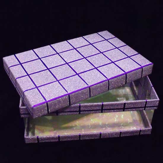The rectangular printed paper box features transparent walls for an interior view. It boasts a contemporary touch with its mosaic-tile-style finish. This checkered paper box is great for gift packaging.