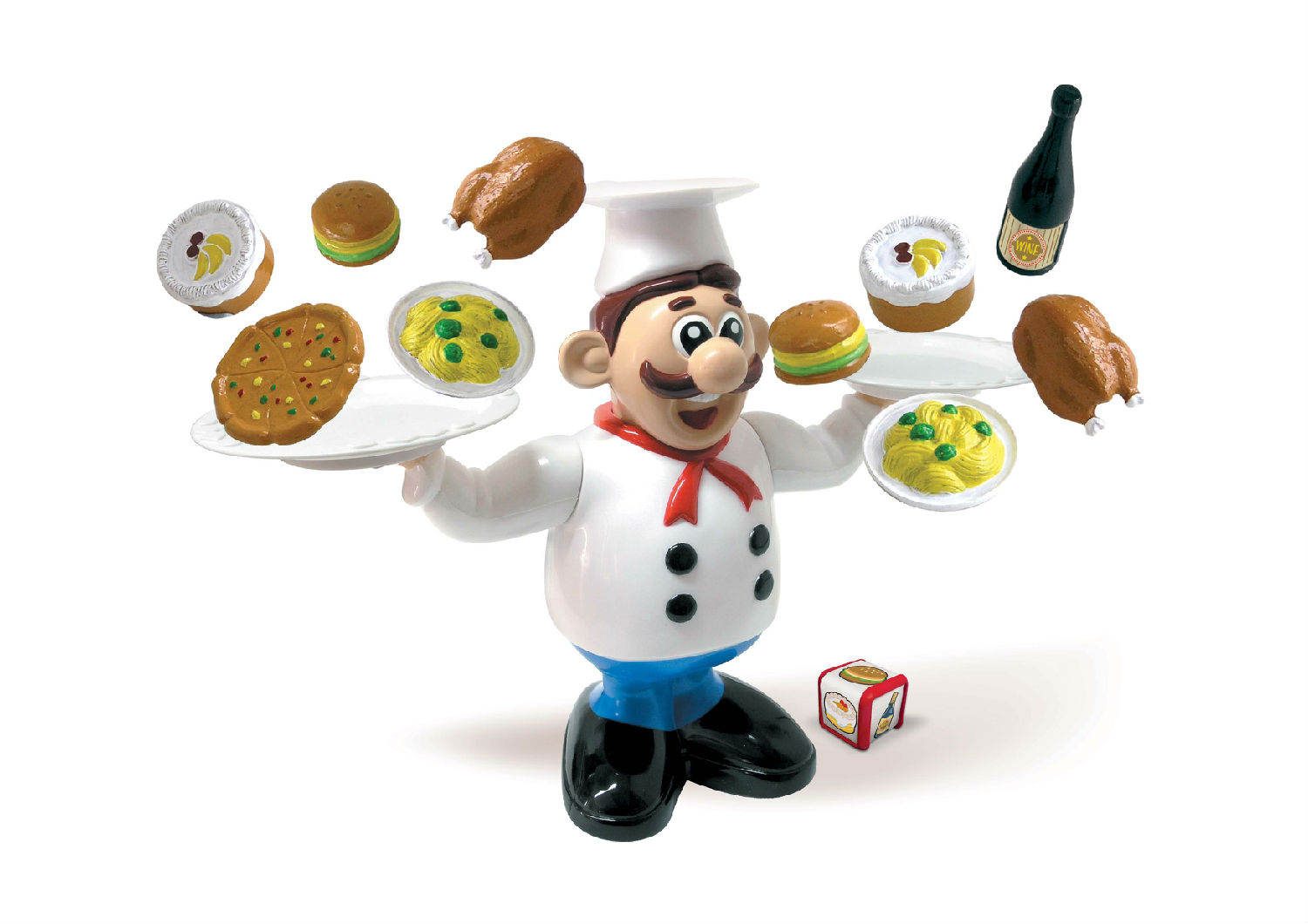 Featured here is a chef figure in a cartoonish design. The chef holds one plate on each hands and the plate can be used to balance the included food items. It is and fun and education toy for kids to learn about weight and balance.