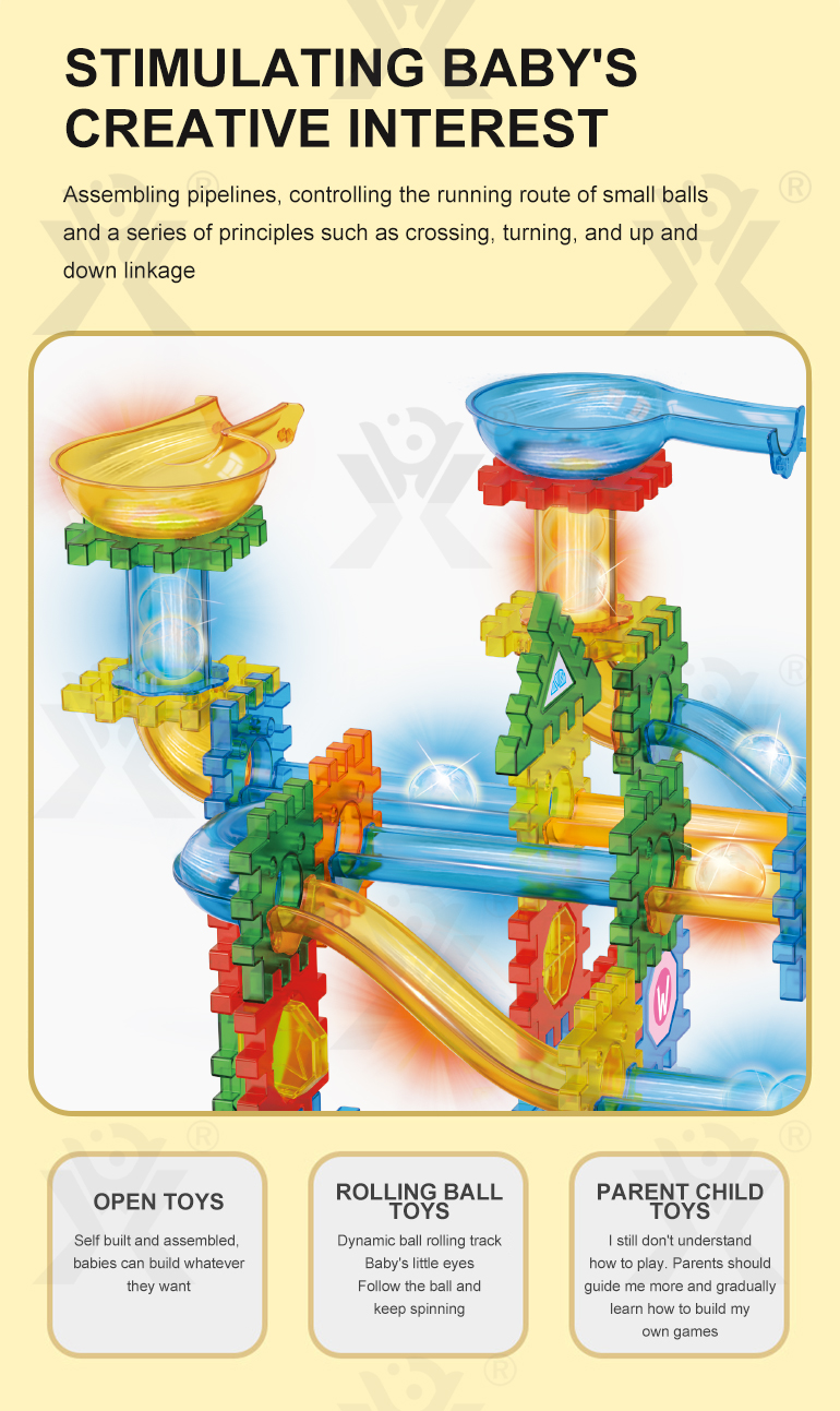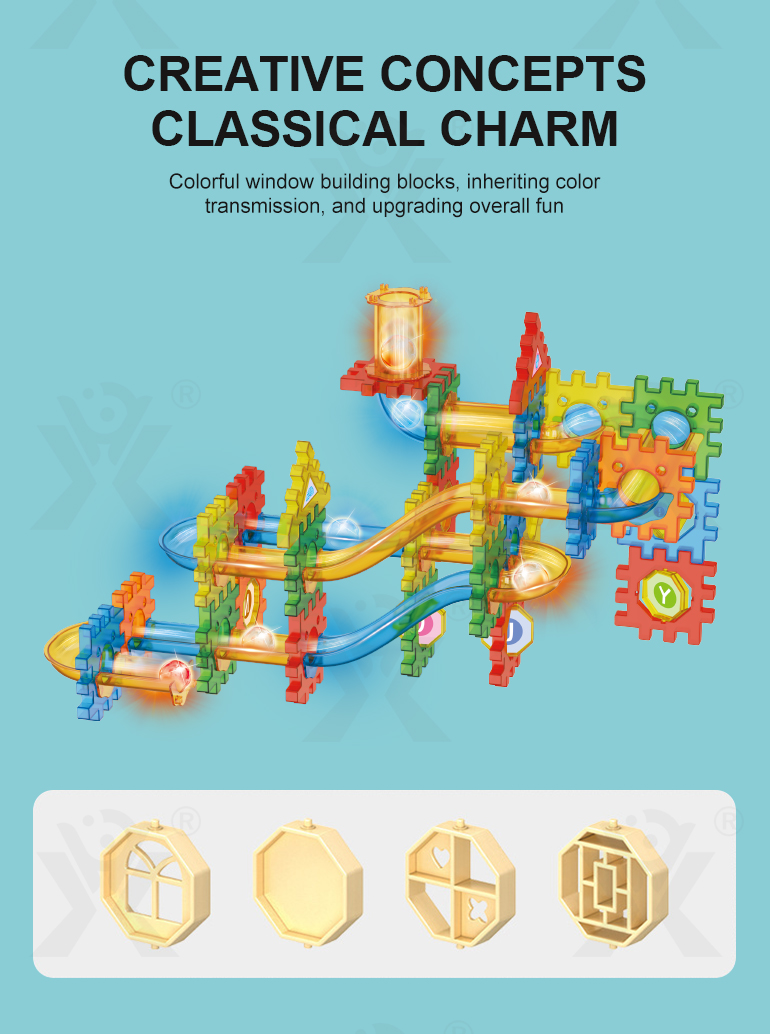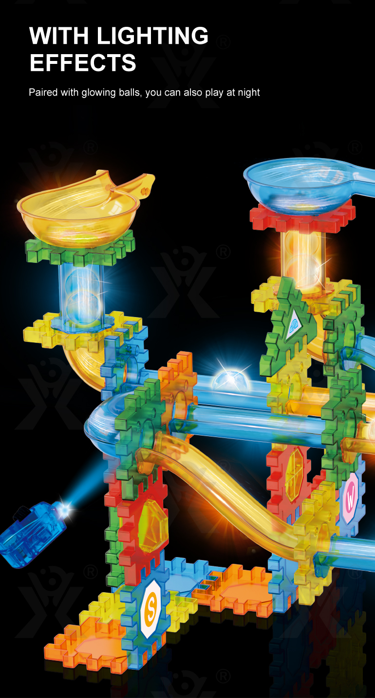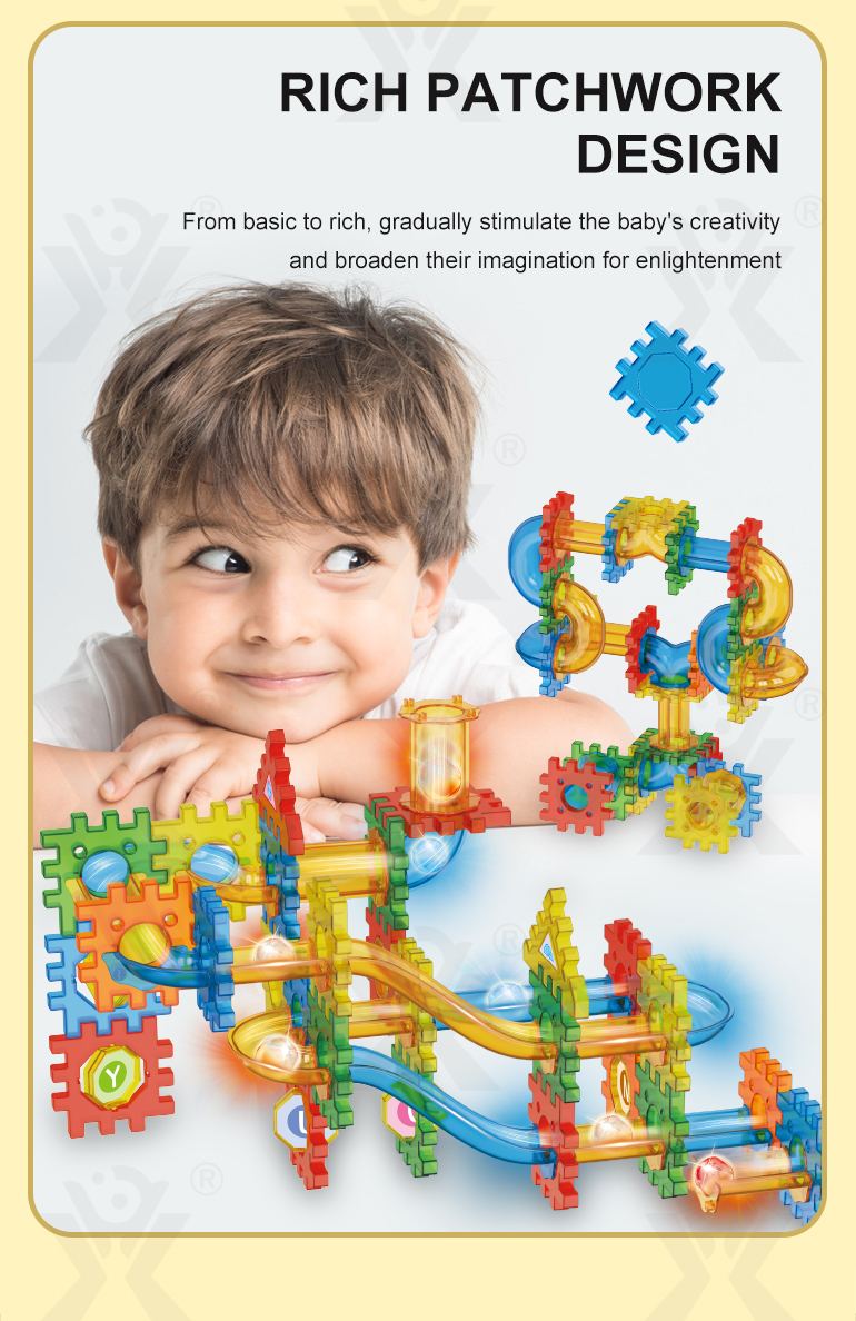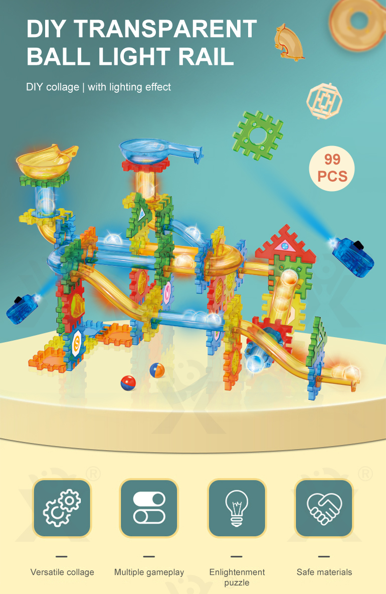 Chengji child education toys building game 99 pcs pipeline rolling ball set construction building blocks with light