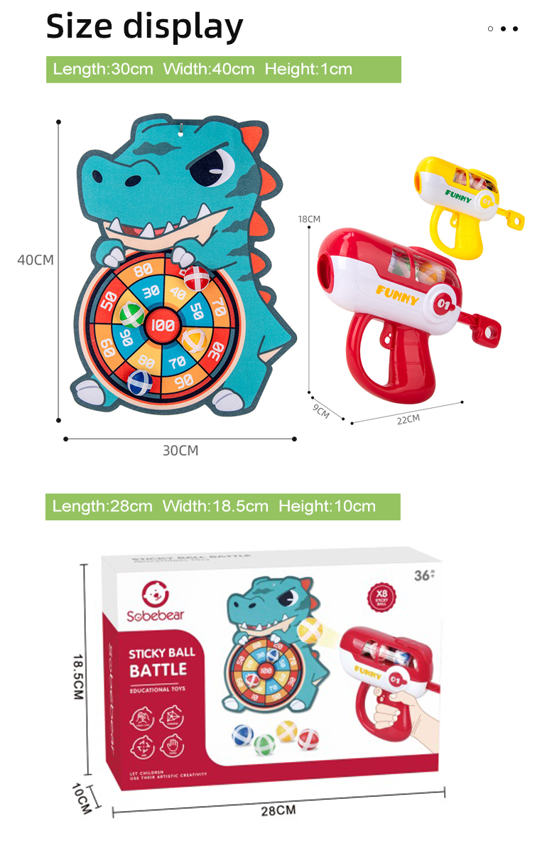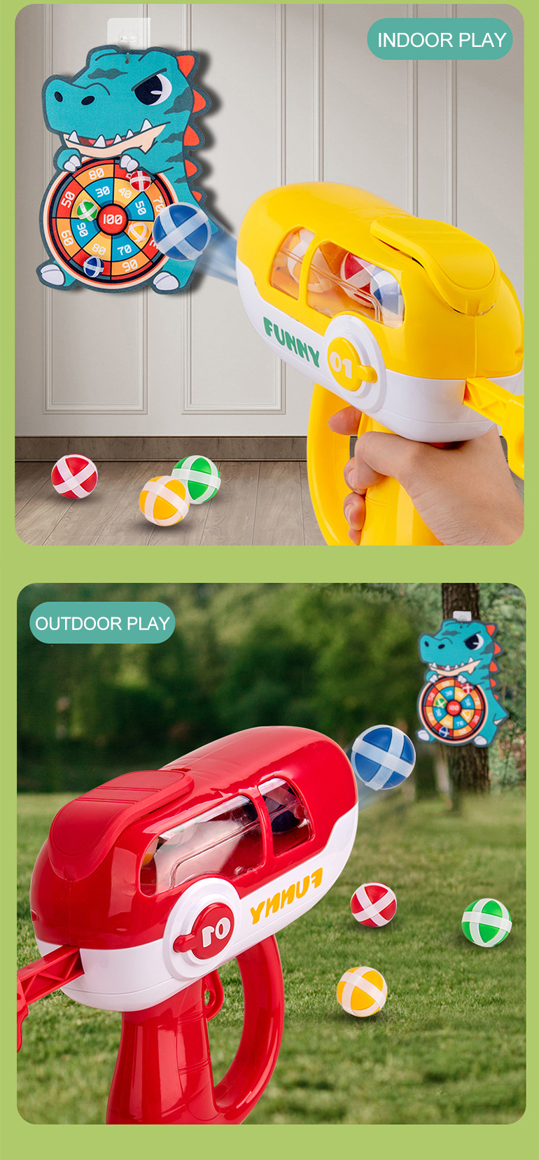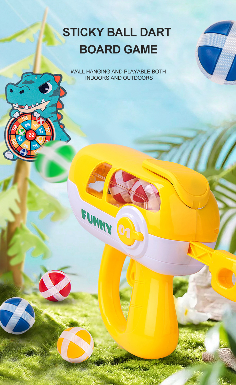 Feature 2: Kids sticky balls dart board target shooting throwing game with gun