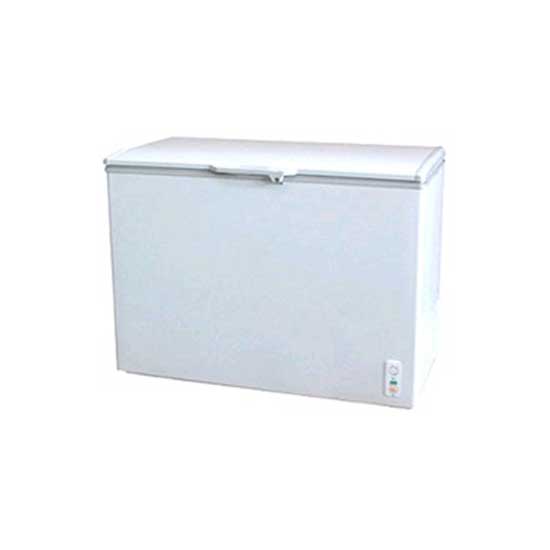 Displayed is a chest freezer with a square-shaped compartment for keeping meat and seafood. The mechanical temperature control with a power indicator helps to save energy. This durable freezer is a good appliance to accessorize a modern kitchen.