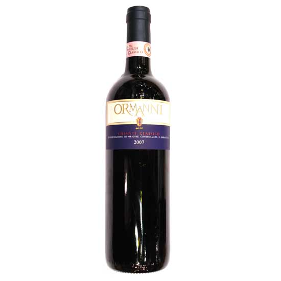 Outlined is a bottle of Chianti Classico red wine that is fermented for 15 days. The blend of Sangiovese and Canaiolo has a strong taste of red fruits. This elegant red wine is the brilliant enhancement for meat dishes.