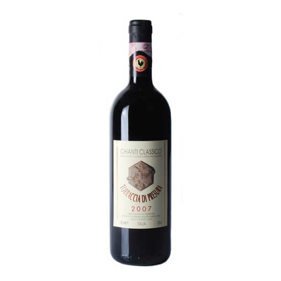 This exclusive Chianti Classico is mainly made from Sangiovese grapes with a small percentage of Merlot. The red wine showcases an intense ruby red color with characteristic ripe fruit and floral notes of brushwoods, violets and irises. The medium-bodied wine pleases your palate with firm tannins and good length.