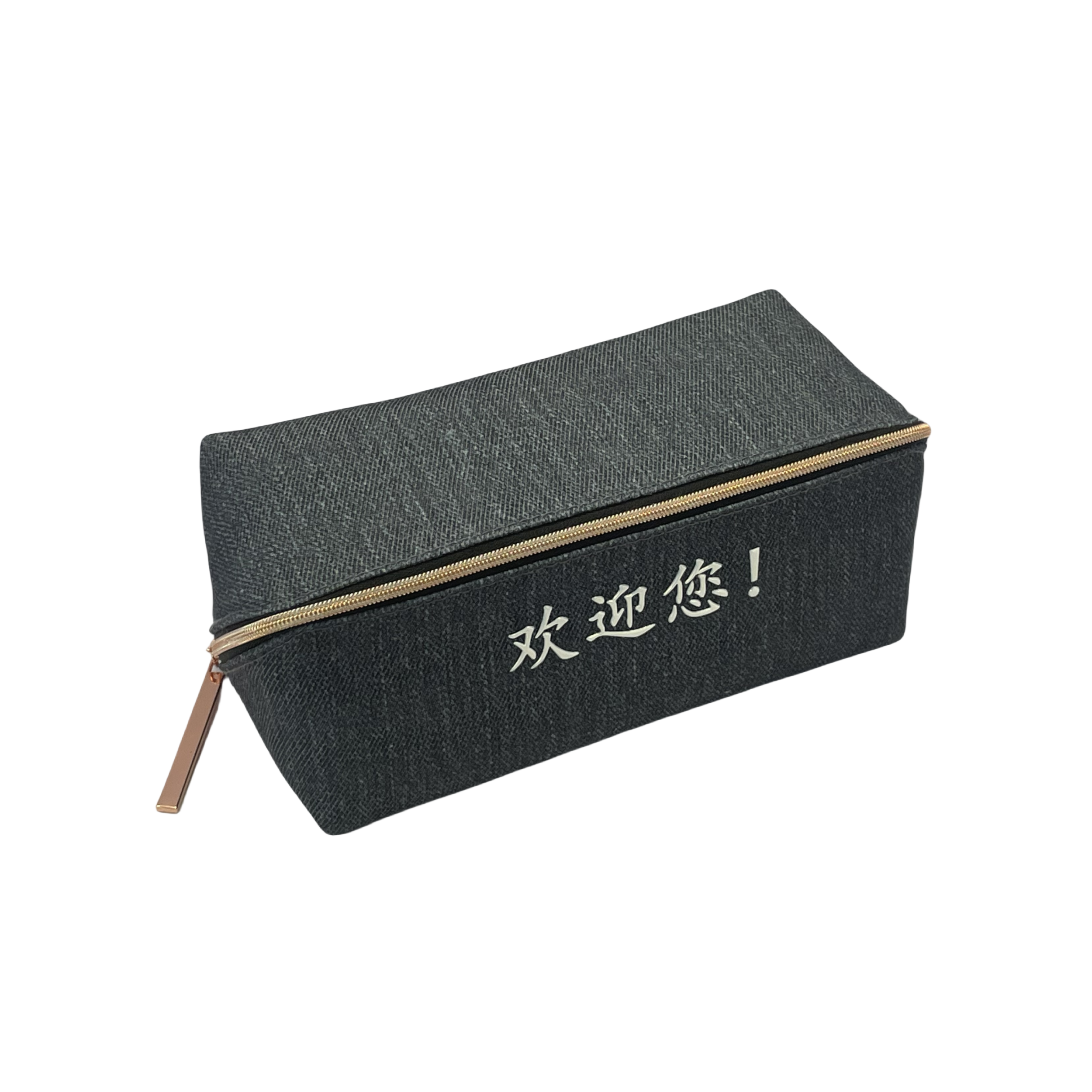 Add a touch of effortless cool to your beauty routine with this stylish denim cosmetic bag. Crafted from premium cotton denim, this durable organizer features a sleek TPU logo patch for modern branding appeal. The rugged yet refined design transitions perfectly from daytime adventures to weekend getaways, keeping your essentials protected with laid-back sophistication. Roomy enough for daily makeup must-haves but compact for easy packing, it’s the perfect fusion of function and streetwise flair.