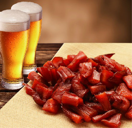 This is a collection of processed chicken jerky with a mouth-watering appearance. Jerky comes with a charming surface in bright red. It is a great snack choice for you to share with your friends and family.