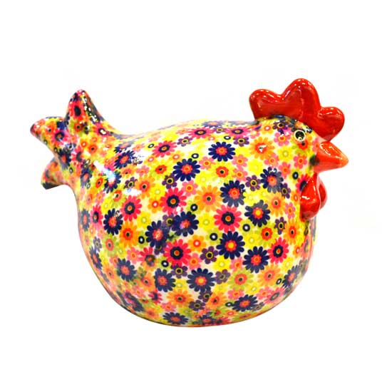 This exquisite chicken decoration features colorful floral patterns on the surface. The well-designed piece features a round body and a sleek finish. The attractive ceramic decoration is a unique add-on to your tasteful room decor.