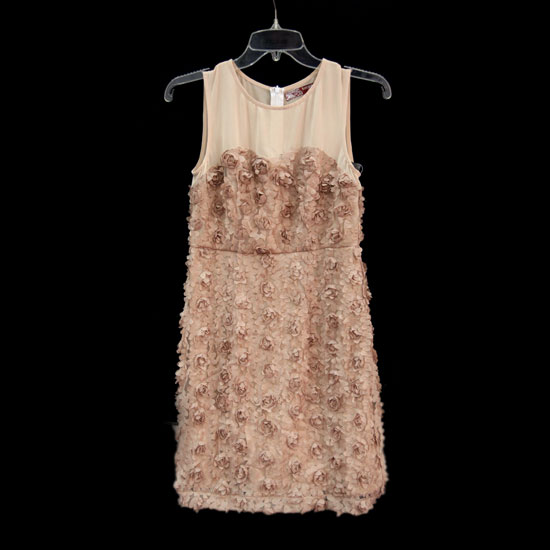 The dress's lower bodice and skirt are paved with floral accents for an elegant appearance. The skin-colored straps and cuffs make the edge of the accents right below them a pseudo sweetheart neckline. This special dress will sure get you noticed among the crowd in an instant.