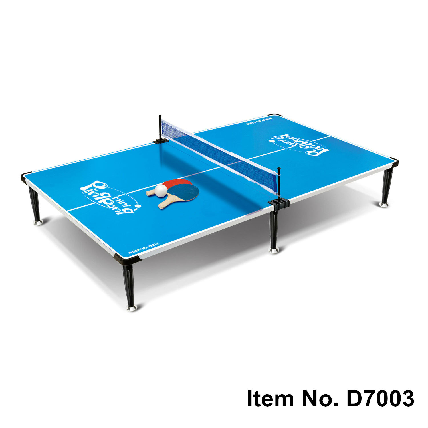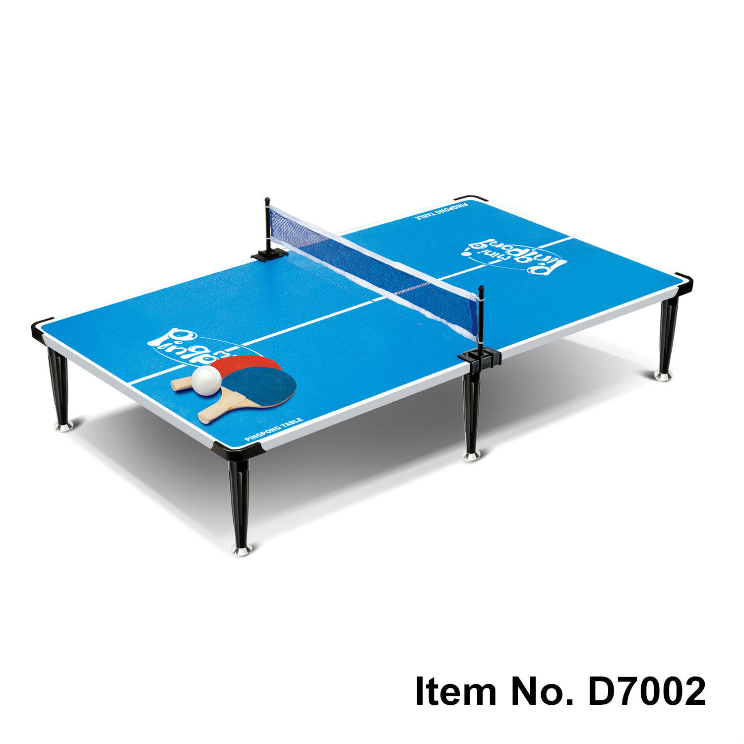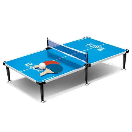 This table tennis game table allows kids to maintain their exercise routine, rain or shine. This rectangular table stands firmly with six stable legs, while the rounded corners are covered for improved safety. Finished with bold and bright colors and two ping pong rackets, this game table resembles a real one for added fun.