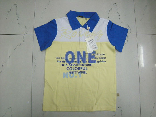 Displayed here is a knitted boy’s T-shirt with yellow and white colored body. It is designed with blue short sleeves to contrast with the lightly colored body for a smart look. Let your son wear this colorful T-shirt with a pair of jeans and sport shoes when you take him to the playground.