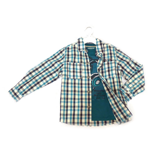 This is a children's shirt that is printed with green and black checked patterns for added style. It is made of quality cotton for a soft texture. This finely designed shirt is a great choice for your beloved kid.