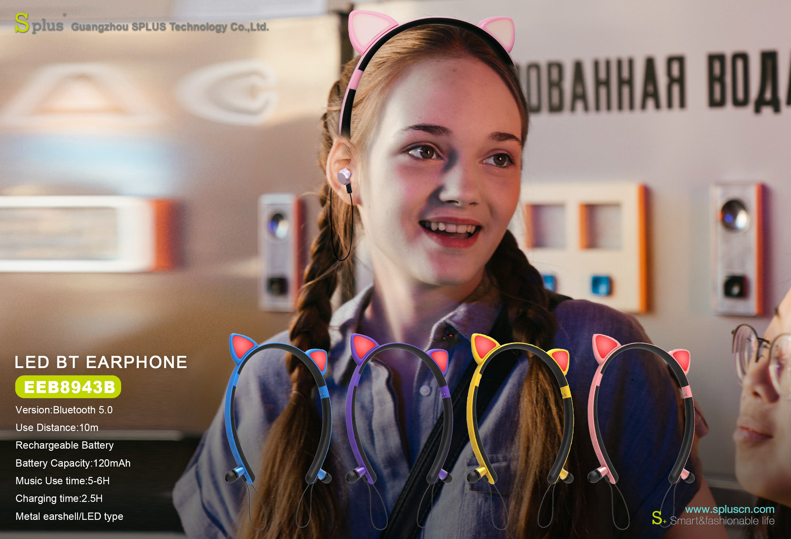 Children Wireless Bluetooth 5.0 Headset Adjustable Comfortable Stereo Sound Lovely Cat Ear Earphones