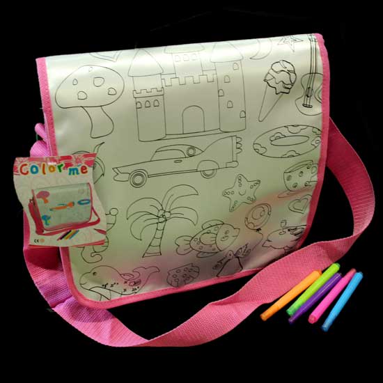 This children's bag features a blank surface with outlined patterns. Young artists can use their imagination to color the tote bag in their own way. The set also comes with 5 coloring pens.