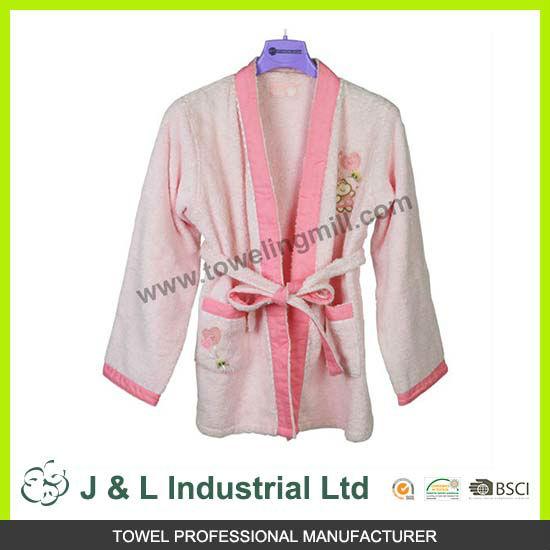 Made entirely of cotton, this bathrobe is specifically tailor-made for children. The lovely pink design features double-side terry finishing, and the front is decorated with a cute embroidered animal pattern. In addition to its long sleeves and fabric belt, the kids' bathrobe also comes with two side pockets, one of which is garnished with a delicate embroidered pattern.