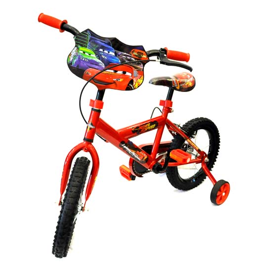 This displayed children's bicycle is themed with cartoon cars that appeal to small boys. The rubber tires are manufactured for running through difficult terrains easily. This children's bicycle is a great birthday gift for energetic boys.