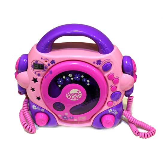 This chic CD player boasts a vibrant design with fun patterns, which are especially appealing to children. The easy control makes it a user-friendly piece for children. With a lightweight structure and a top handle, this CD player allows children to enjoy their favorite music on the go.