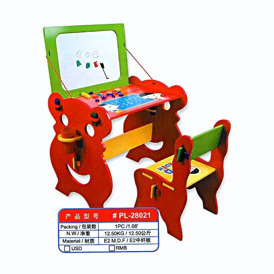 Featured is a drawing desk with a chair for children. It comes with a drawing board and drawing tools. This drawing desk is ideal furniture for children who love to draw.