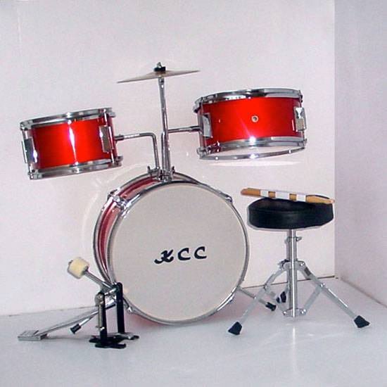 This drum set is designed for kids and teenagers. It includes a bass drum, a snare drum, a tom-tom, a crash pedal and drum sticks. This drum kit set is a great item for kids to create their own rhythm sections.