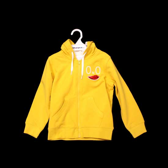 This is a children's hoodie that comes in an eye-catching yellow color. Made of cotton, this hoodie is soft, comfortable and warm. With a front zipper, this hoodie is easy to wear.