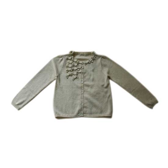 This is a children's knitted cardigan that features elegant bows ornament on the round collar. This knitted cardigan features a beautiful and chic design for spring and autumn wear. This super-soft cardigan is finished with long sleeves and a single-breasted button front.