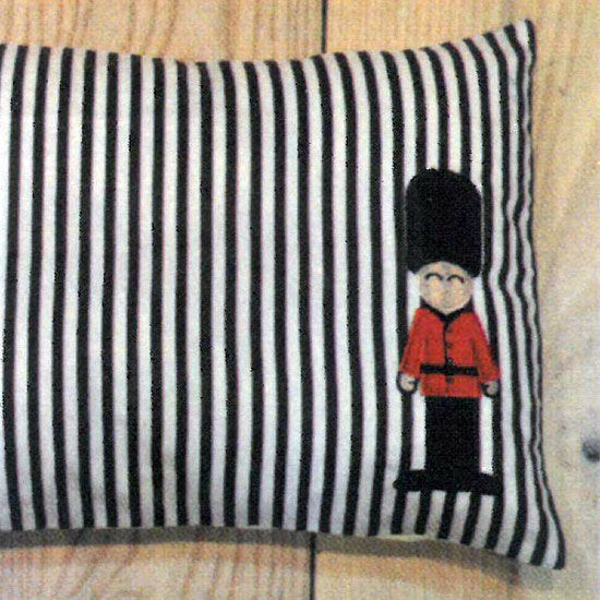 This is a rectangular pillow boasting a lovely design. It features a printed cover with stripe patterns. The soldier figure embellishment adds a touch of cuteness to this pillow.