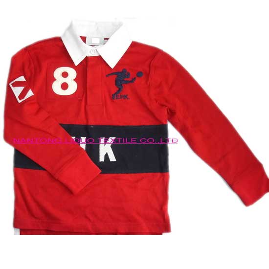 Outlined here is a polo shirt designed for children. It comes with a white shirt collar and a long-sleeved design. The polo shirt is well made of high-quality material for gratifying wearing comfort.