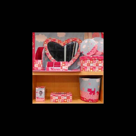 • This set includes a folder, heart shaped mirror, storage boxes, and rubbish bin