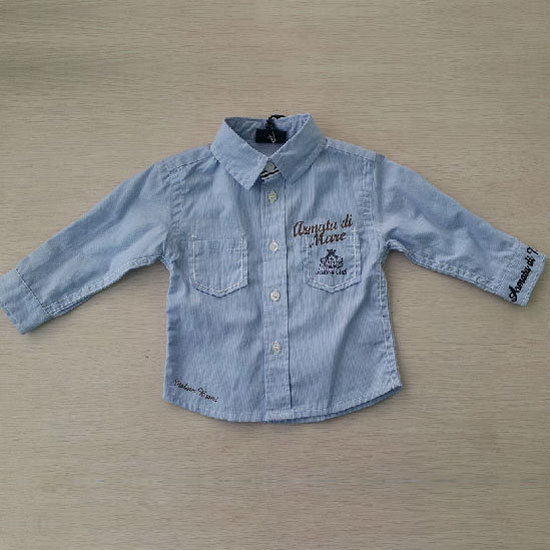 This is a children's shirt that comes in a light blue color. With a button-up design, this shirt is easy to wear. This shirt is professionally made for comfortable wearing.