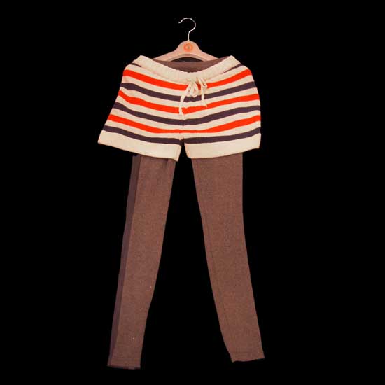The featured children’s wear set includes a pair of overall striped shorts and a pair of plain tights. The long tights can make girls look thinner. The striped patterns and the beautiful waist string give the shorts a cute and adorable touch.