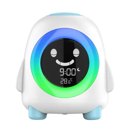 This is a children's sleep training clock. The main target is preschool children from 1-6 years old. The purpose is to adjust children's schedule, improve sleep quality, accompanying children to spend leisure time, develop children's ability to live independently. Let parents reduce annoyance and have more time to deal with their own affairs.