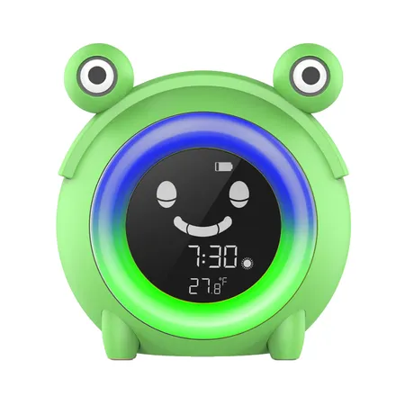 This is a children's sleep training clock. The main target is preschool children from 1-6 years old. The purpose is to adjust children's schedule, Improve sleep quality, Accompanying children to spend leisure time, Develop children's ability to live independently. Let parents reduce annoyance and have more time to deal with their own affairs.