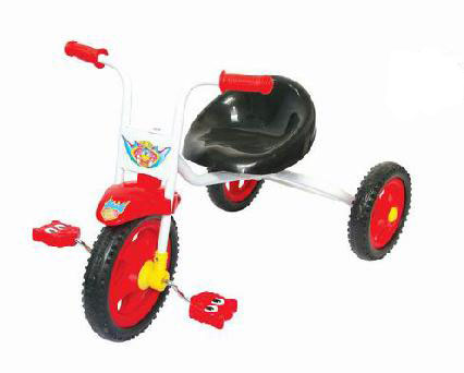 The featured tricycle bestows a modish design by coupling black and red colors together perfectly. Funny faces are imprinted on the pedals to make your kids laugh, while robust construstion protects your kids from falling off for sure.
