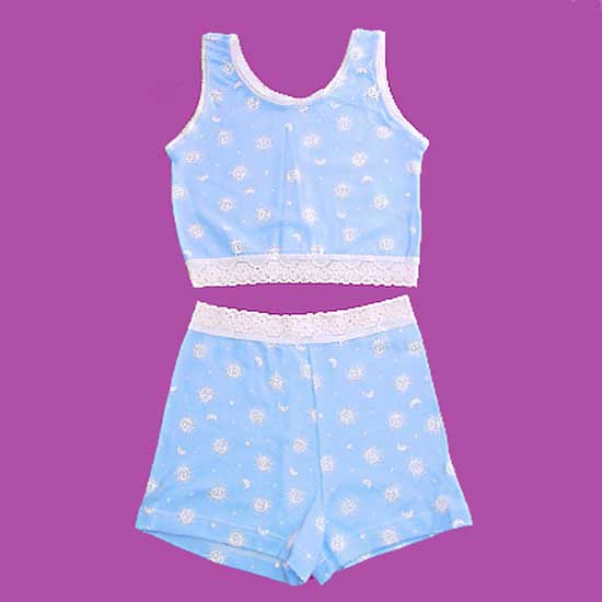 This children's underwear set includes a sleeveless top and a pair of boxers. Both pieces are trimmed with adorable motifs. The loose-fitting design also ensures comfort for wearing.