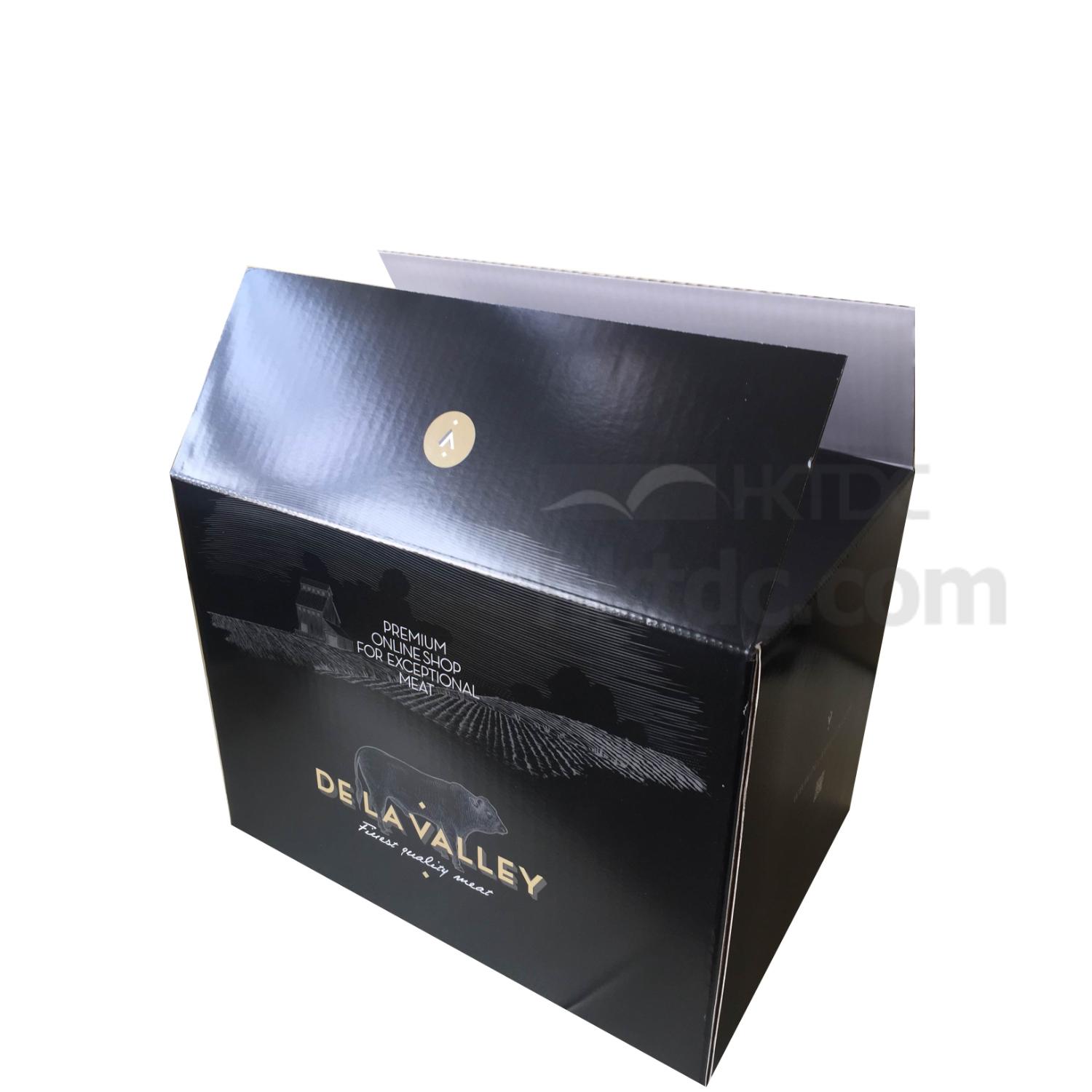 * Remark: this box is designed for chilled meat packing, it must be wet / moisture resistance, so both outer and inner surface has applied gloss film lamination.