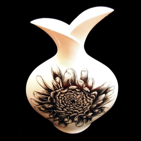 Light bounces off the smooth translucent surface of this flower vase to project its exuberant glamor. Its split opening in two petal-like halves complements the delicate hand-painted ginger flower pattern, while its pure-white fine porcelain shimmers in exquisite elegance to blend in with your home décor nicely.