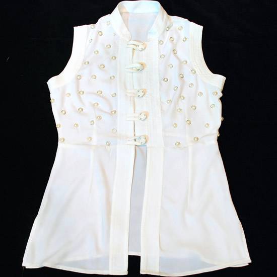 The featured vest can absolutely underline your perfect body shape. It is adorned by golden beads. The vest has Chinese-style button closures, offering an exotic touch for your overall appearance.