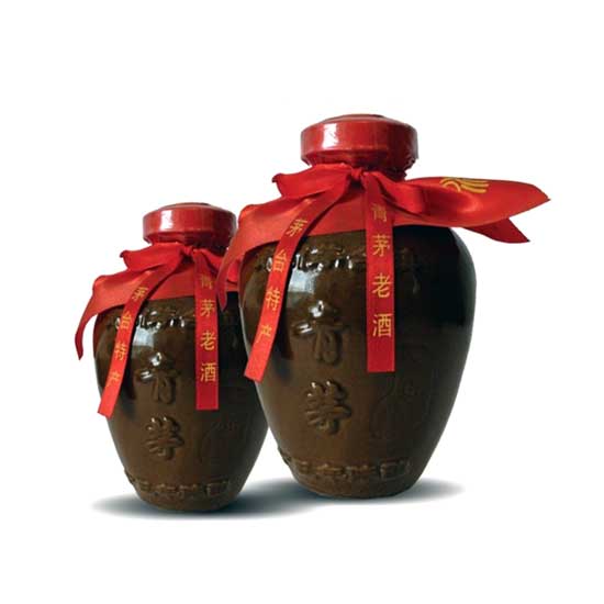 Displayed is a bottle of Chinese wine brewed from high quality ingredients. Skillfully processed, this wine has a classic sauce fragrance that is pleasant and appetizing. This Chinese wine is ideal for gatherings.