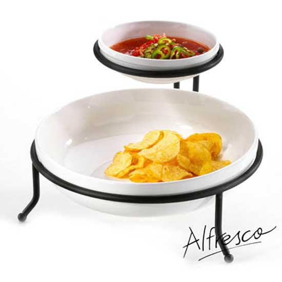 This chip and dip stand comes in a classical 3-legged design for a sturdy base. The robust housing is easy to clean and maintain. This chip and dip stand is an excellent choice for restaurants, homes and so on.
