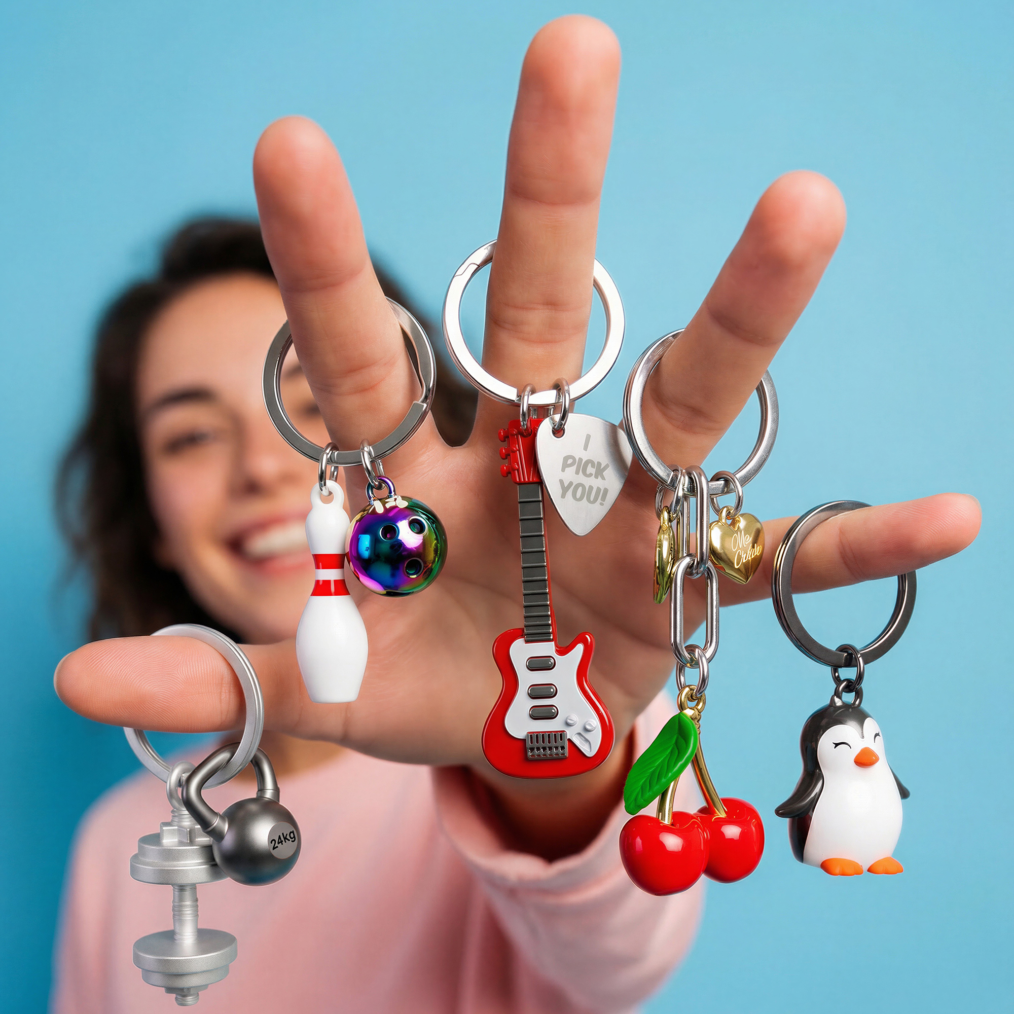 Chocli® Metalmorphose line - 3D premium keychains - Music Collection 'Electric Guitar' keyholder - Sport Collection 'Gym' & 'Bowling' keyholder - Animal Collection 'Penguin' keyholder - Keycharm Collection 'Cherry' keyholder - base material Zinc-Alloy - Vectorbox packaging - Copyright/Copyright registered design