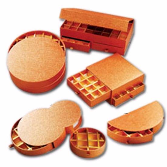 Featured here are chocolate boxes for packaging. The boxes have a special paper exterior with grids inside. Various shapes and sizes are available including circle and square.