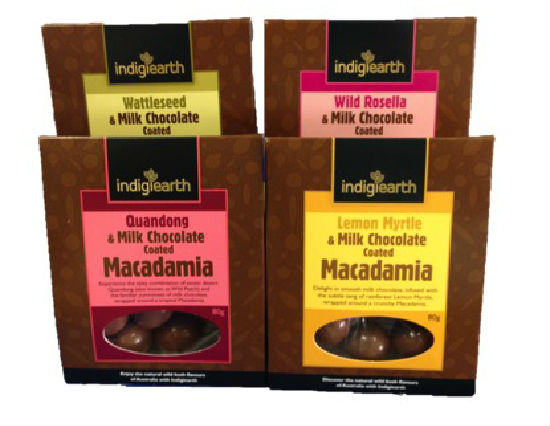 Chocolate coated macadamias with Australian native flavours: Lemon myrtle, wattleseed