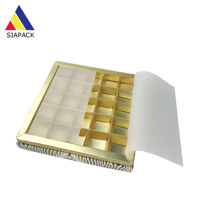 We provide high-quality paper boxes for packing gourmet gifts like candy, chocolates, nuts, cookies, etc. The packaging box is carefully designed with shiny, golden-colored edges for a luxurious touch. The size, color and style of the box are customizable.