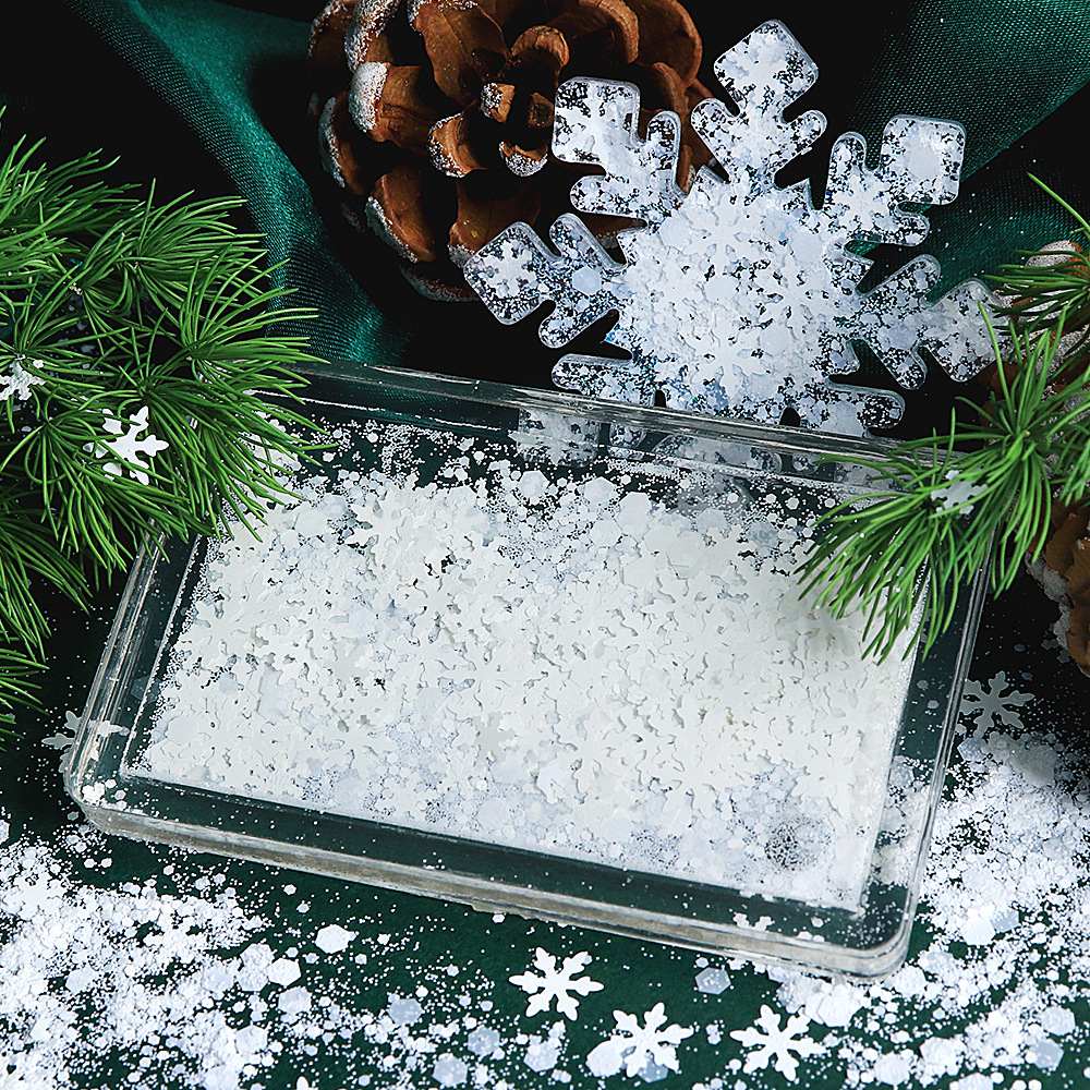 Christmas 5 grams pure white sequin snow scenery accessory. Winter and autumn snowflake glitter snow landscape decoration. DIY hot glue flow hemp.