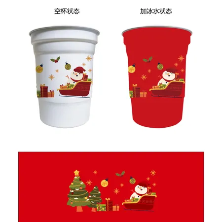 Pour ice water/cold drink , the glass will be in with the liquid Change color quickly after contact From shallow to deep at a glance